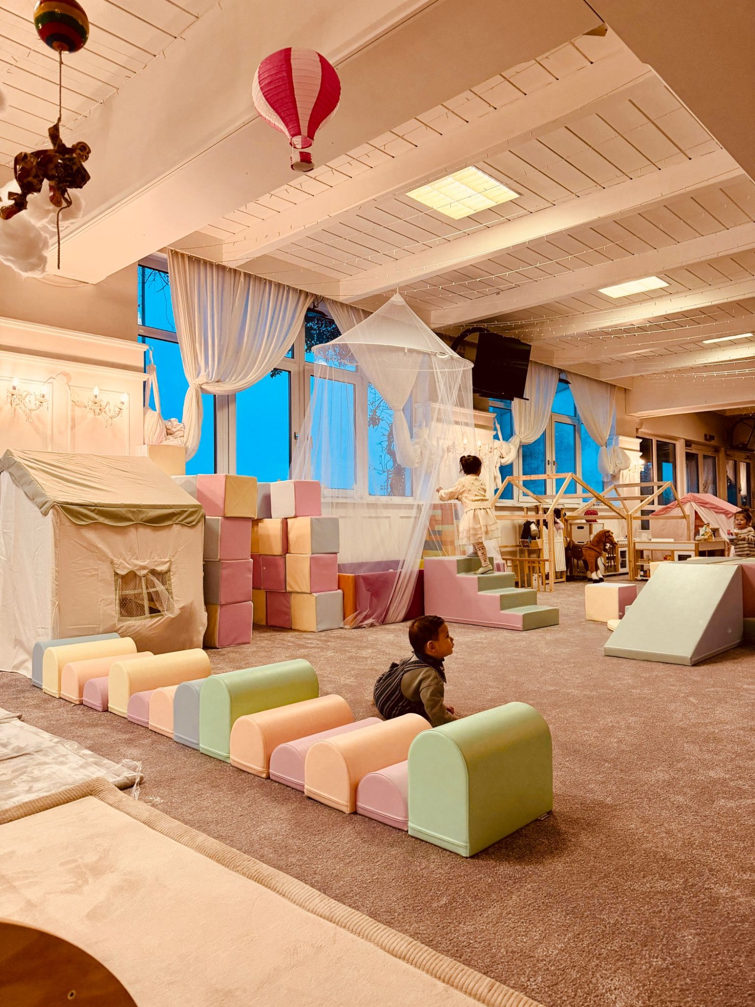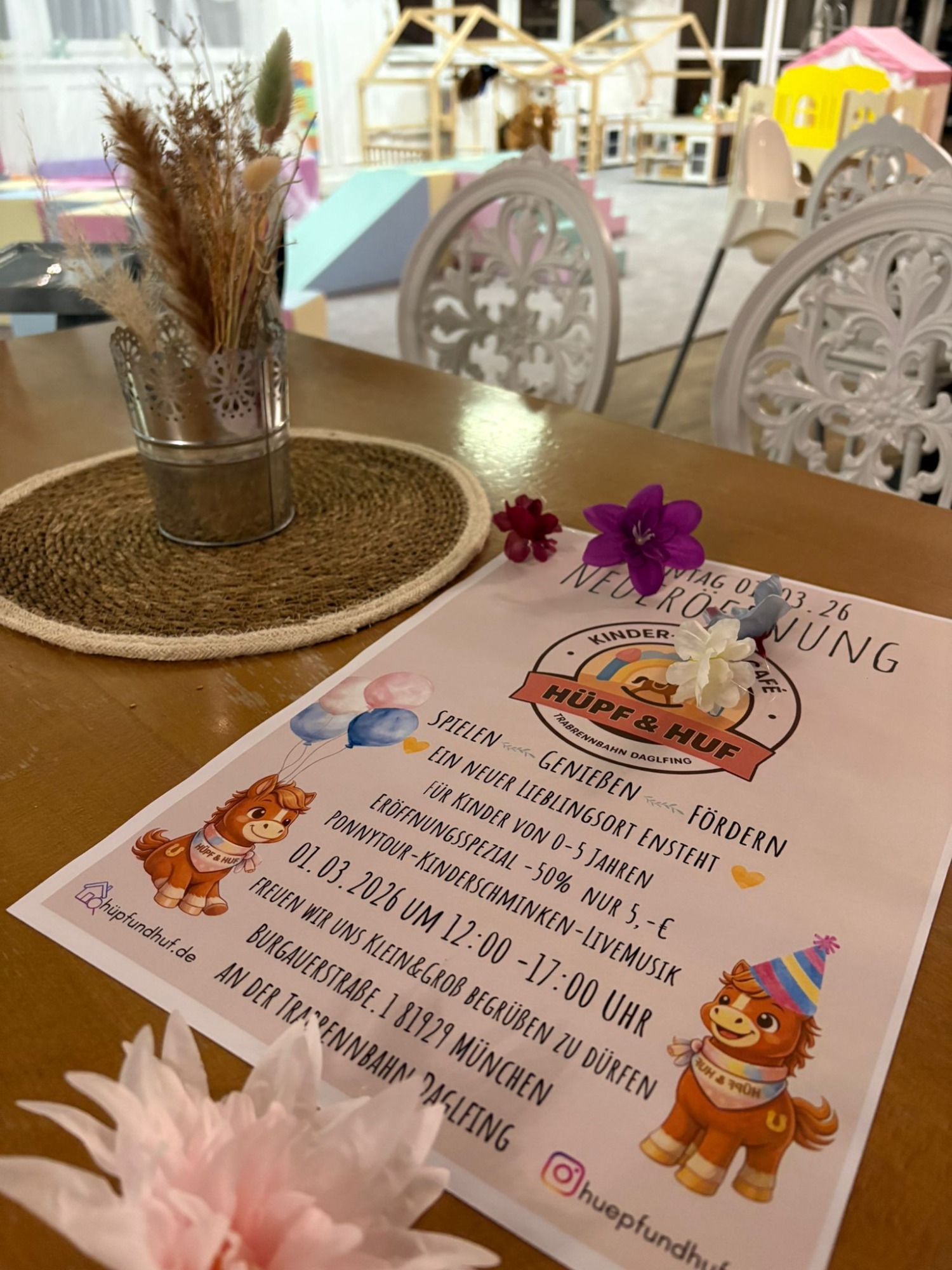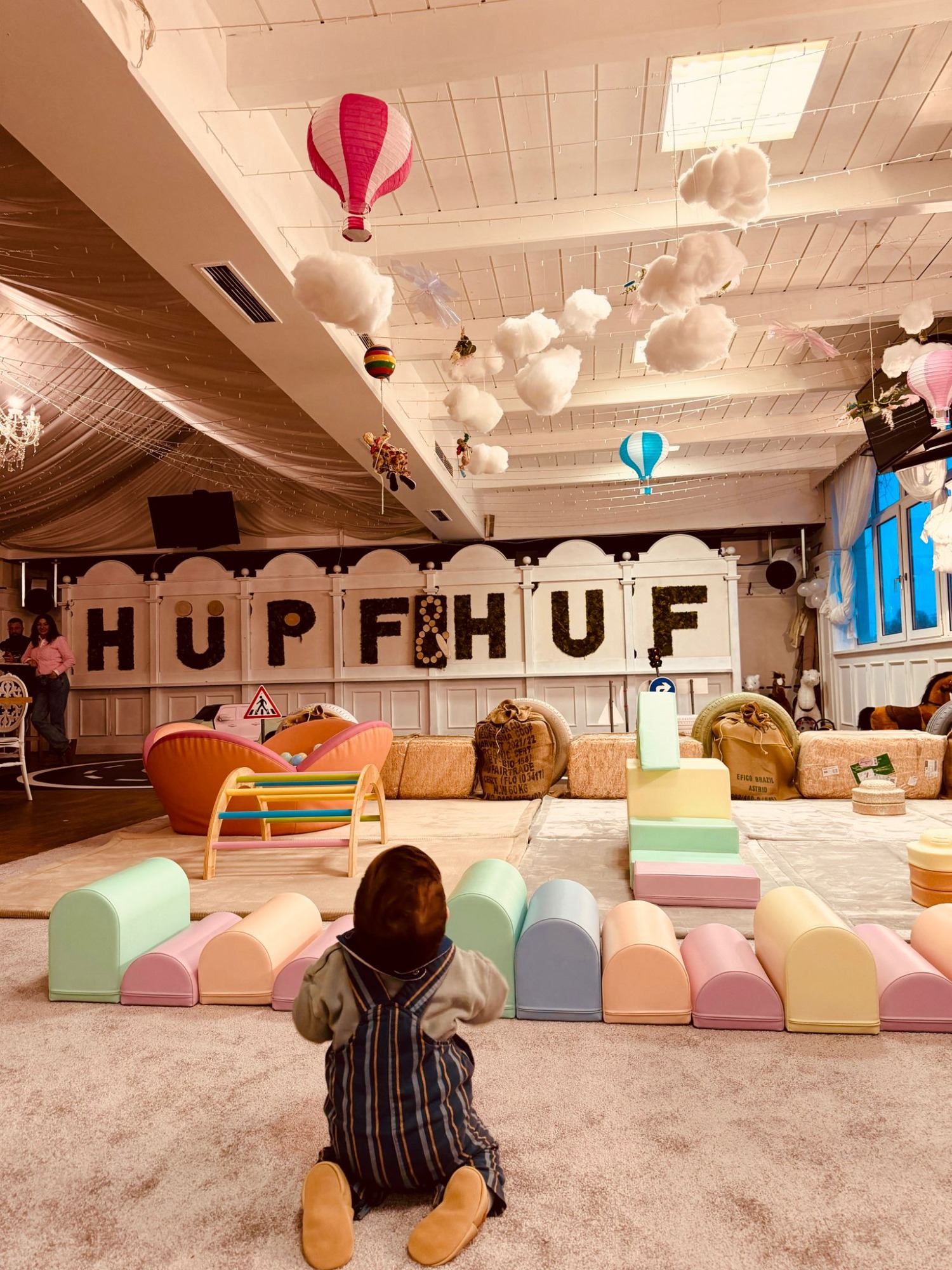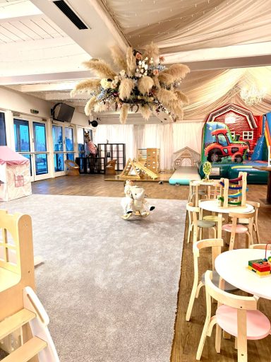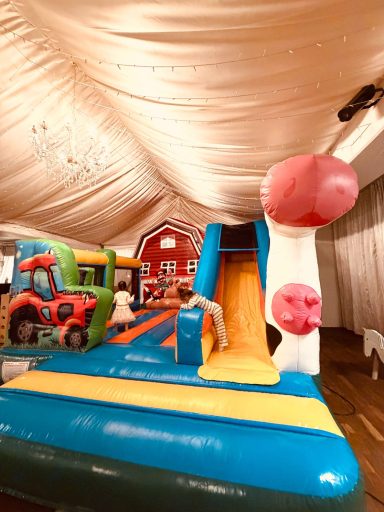 Abenteuer für Groß und Klein: In unserer 300 qm großen Erlebniswelt erwartet euch Spielspaß mit Herz! Während die Größeren auf der riesigen Bauernhof-Hüpfburg austoben und auf der Rennstrecke Gas geben, erkunden unsere Minis sicher und entspannt den liebevoll gestalteten Krabbel-Parcours. Ein Paradies für kleine Entdecker, das Fantasie und Bewegung perfekt verbindet.